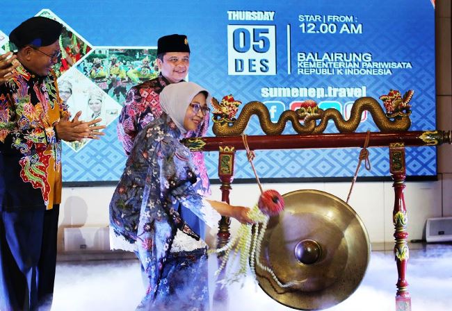Acara dengan judul “Lauching Visit dan Calendar of Event Sumenep 2018 “ dihadiri oleh Esthy Reko Astuti deputi bidang Pemasaran dan Promosi Pariwisata Nusantara Kementerian Pariwisata, Busyro Karim Bupati Sumenep dan jajaran pemerintah daerah Kabupaten Sumenep.