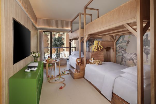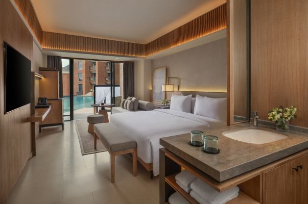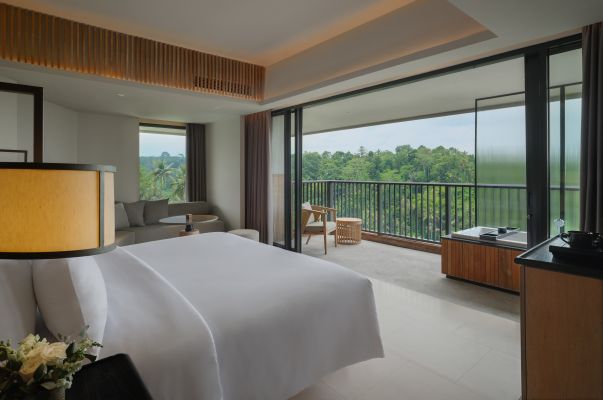 Sentuhan karya seni khas Bali, tekstur alami, serta desain yang dipikirkan dengan cermat menciptakan suasana yang nyaman sekaligus menyegarkan. Setiap kamar dari 159 kamar dilengkapi balkon pribadi dengan pemandangan hutan atau kolam renang, menghadirkan interior yang menenangkan serta detail yang mendukung istirahat optimal. Untuk keluarga dan tamu yang menginap lebih lama, tersedia pilihan kamar yang lebih luas dengan fleksibilitas.